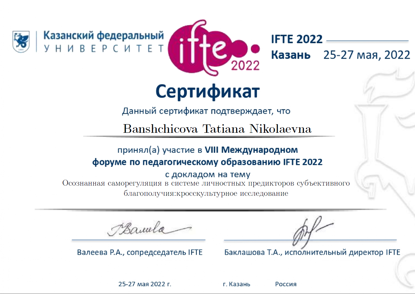 25-27 мая руководитель проекта РНФ «Регуляторные и личностные ресурсы субъективного благополучия молодых людей в условиях неопределенности» Татьяна Банщикова приняли участие в работе VIII Международного форума…